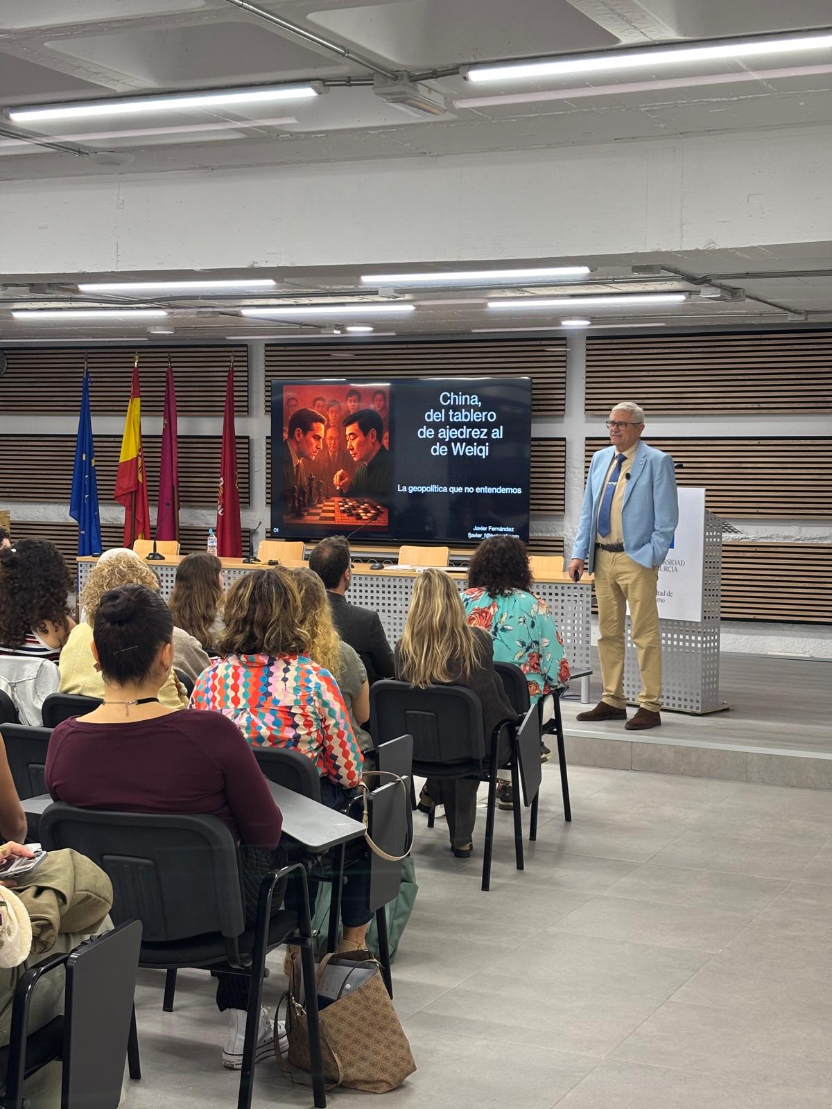 El coronel Francisco Javier Fernández enseña a los estudiantes del grado en Relaciones Internacionales la lógica estratégica de China.